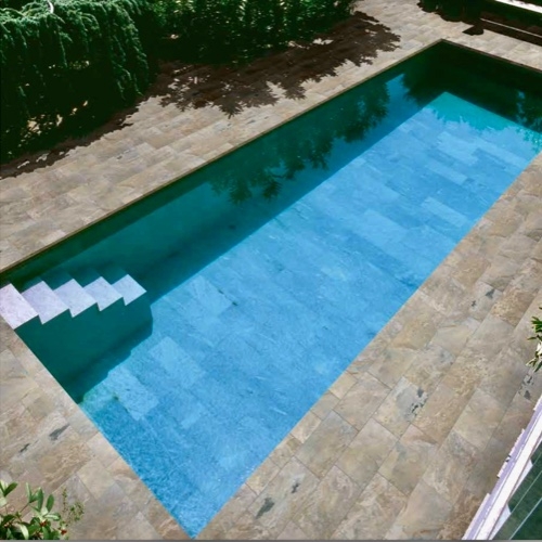 An authentic replica of Indian Slate; a coloured body porcelain tile that perfectly reproduces this prestigious natural stone, and whose strength lies in it's representation of faces and patterns that differ so much to one another that the end result will never be repetitive. Originally produced by Ceramica Rondine for floor or wall, kitchens, bathrooms or living rooms. We stock it for swimming pools!